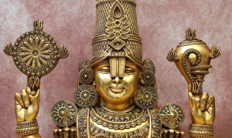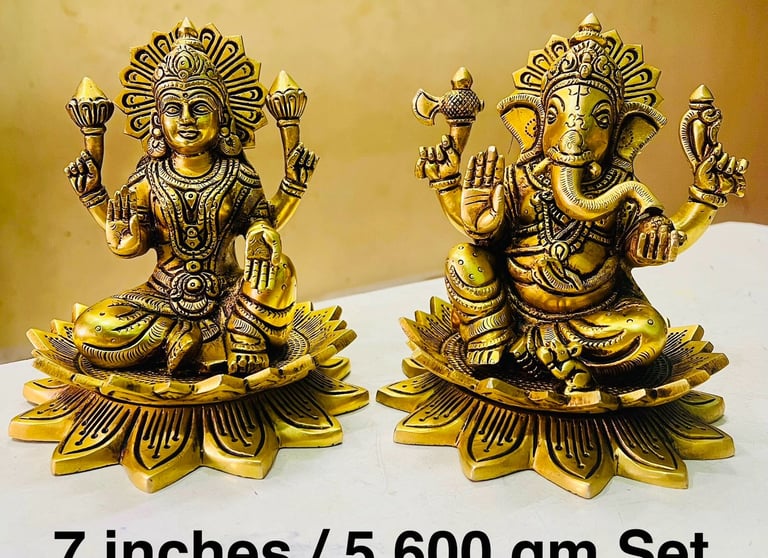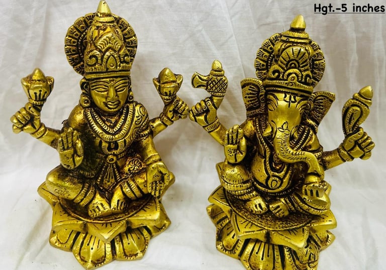 Handcrafted brass and gold-finished Hindu idols reflecting devotion.